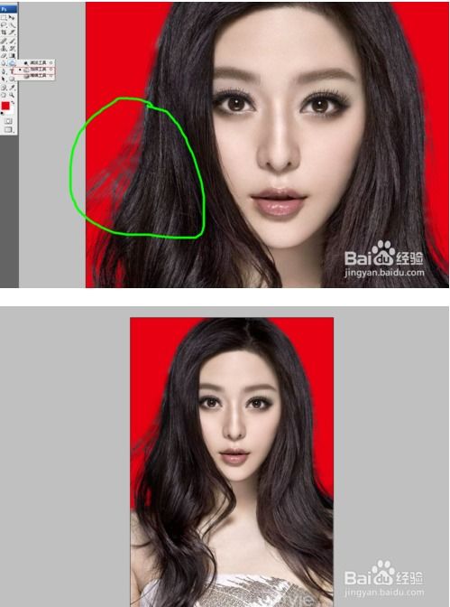 2、在进行发丝部分的抠图时,要特别关注细节部分,发丝非常细小且复杂,需要耐心和细心地进行处理。