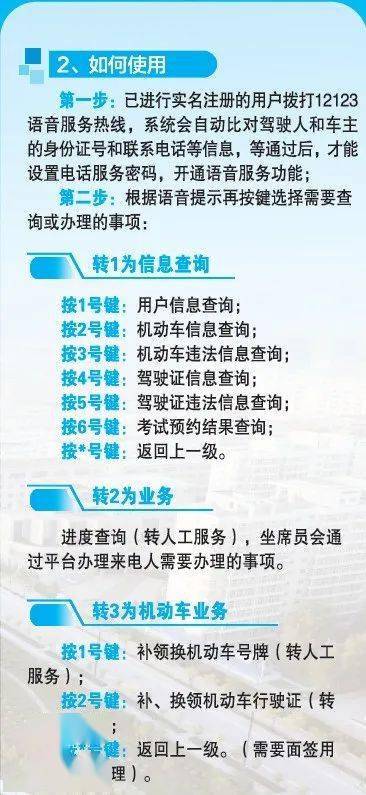 6、答案明确:违章有问题可以拨打交通部门热线电话12345或者交警热线电话122。解释如下:关于交通部门热线电话12345:交通部门热线电话是一个政务服务平台,可以处理民众关于交通问题的咨询、投诉和建议。如果您有关于交通违章的问题,可以拨打此电话进行咨询或投诉。